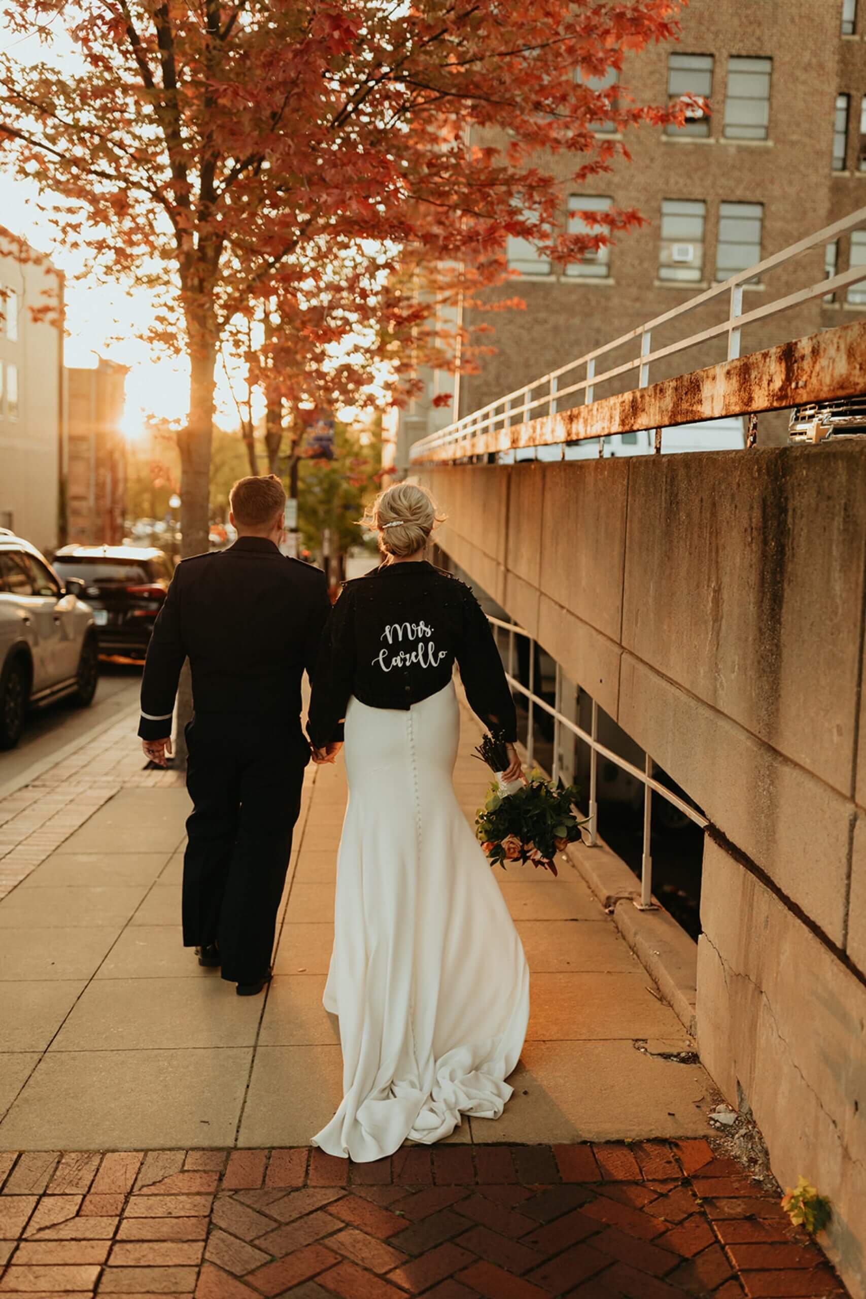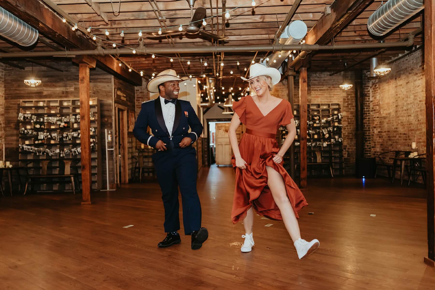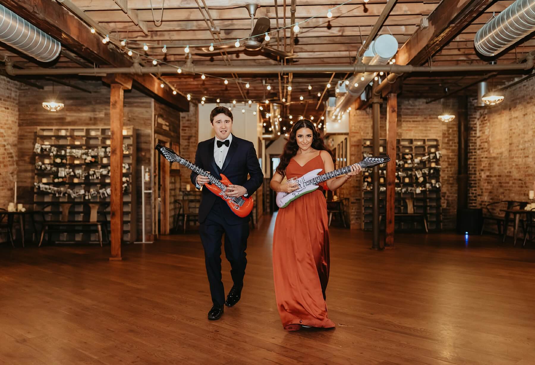 This fall wedding was not just about vows and rings; it was about celebrating the unique love story of Taylor and Trace. To highlight how fun the couple is, they invited the wedding party to make unique entrances. Some of the highlights were a dancing entrance, an entrance with electric guitars, and the maid of honor and best man wearing their football jerseys while equipped with a money gun.