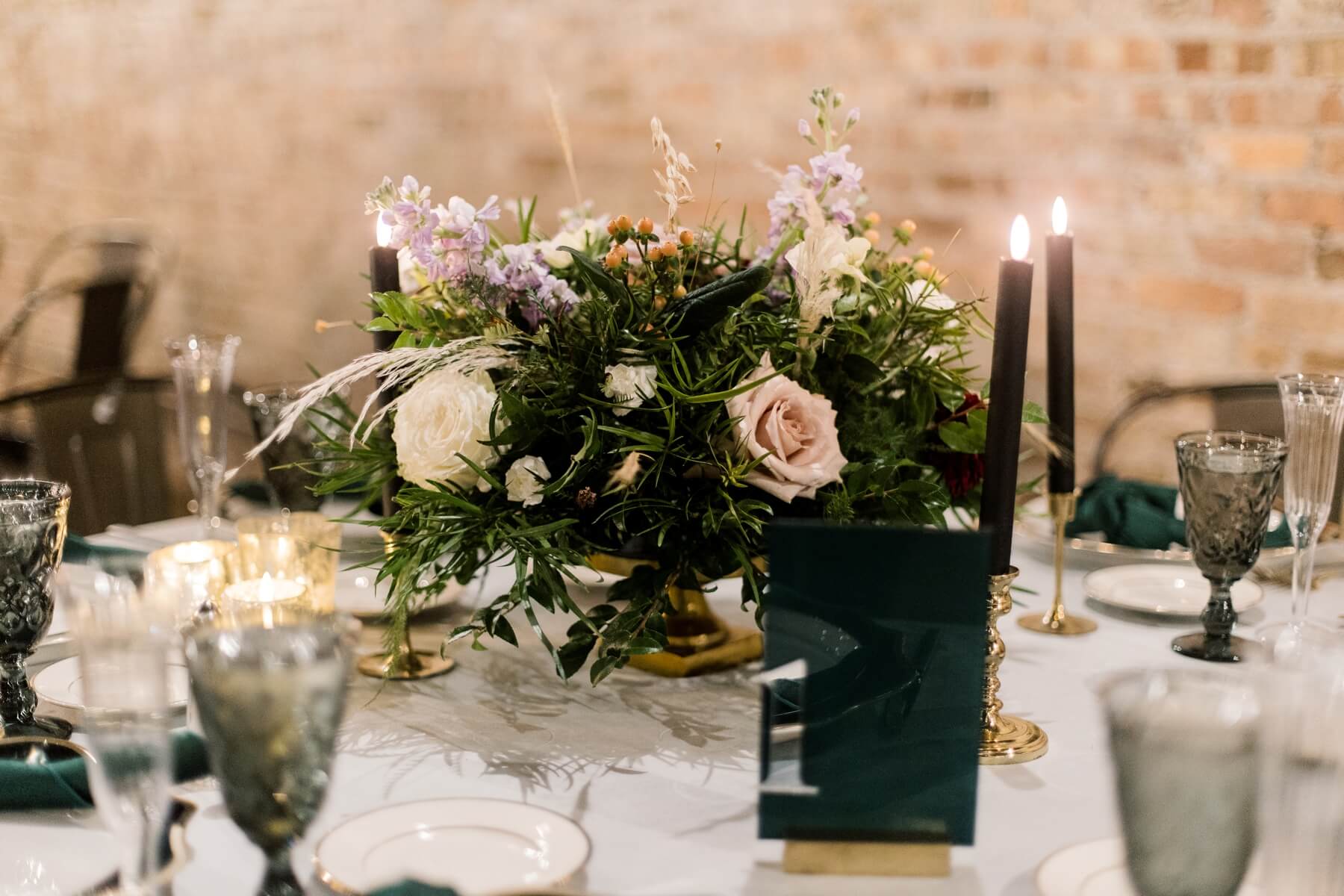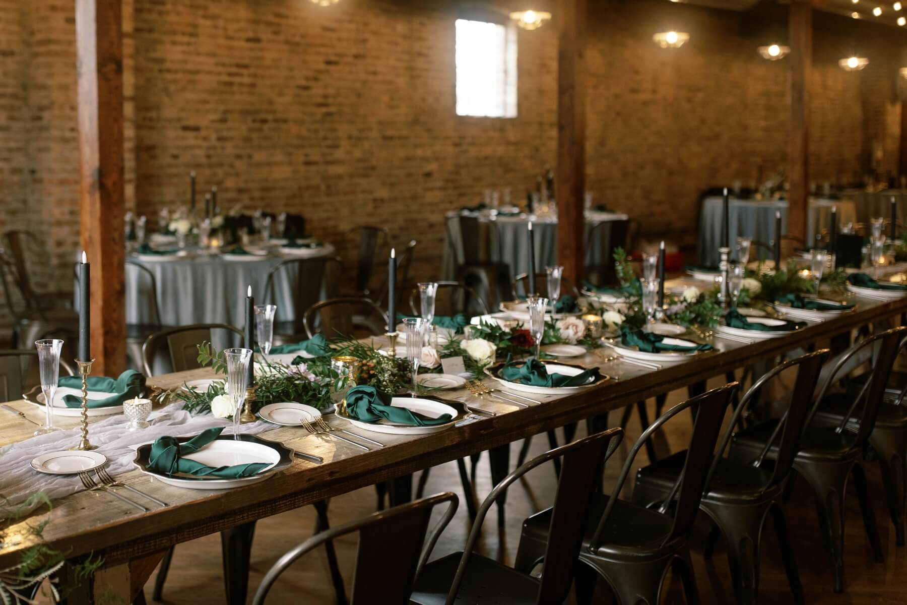 Green and Black Wedding Reception Details