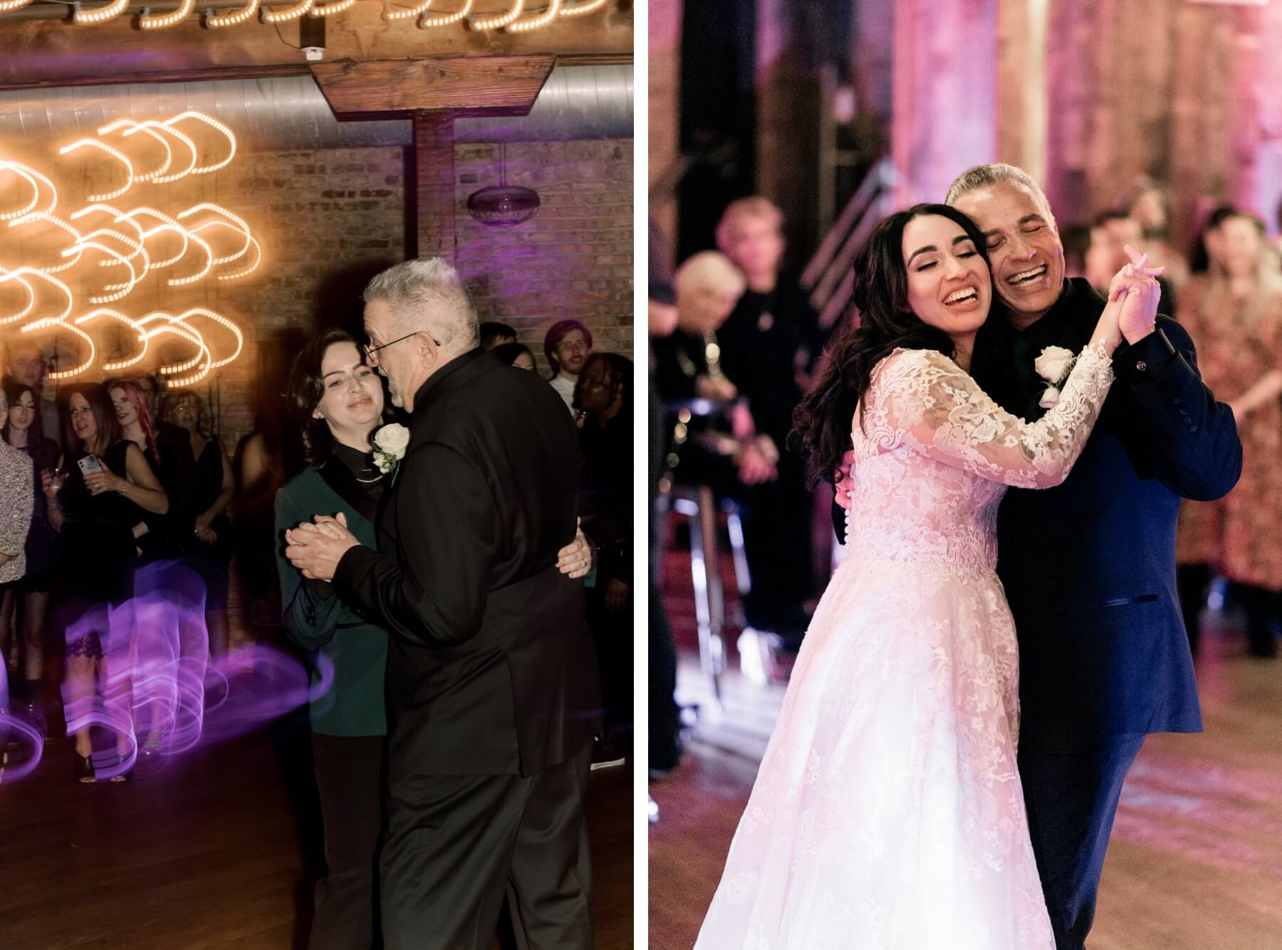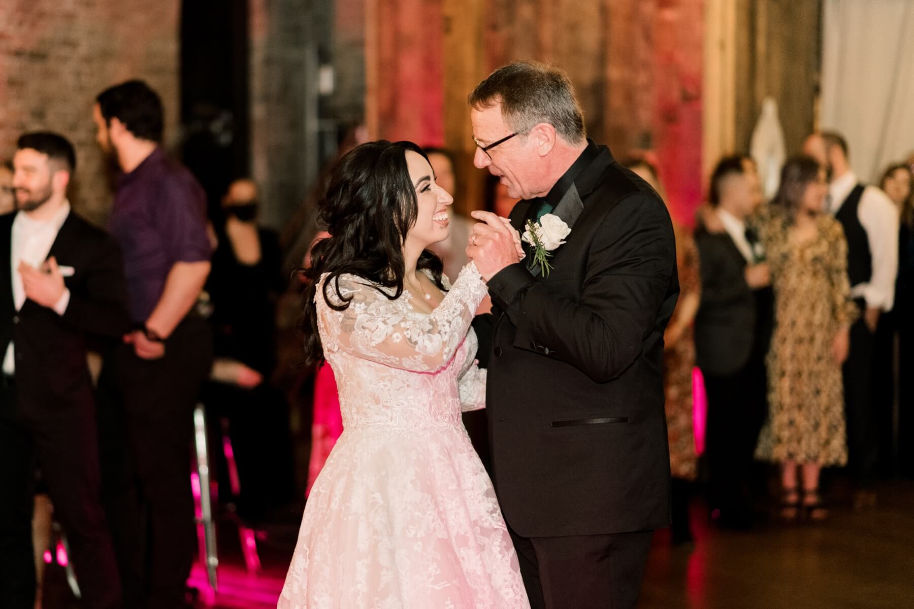 While guests enjoyed dinner, the toasts were given then it was time to dance! Stephanie and Lindsey enjoyed a sentimental first dance then they had dances with the special men in their lives. After that, the guests joined them on the dance floor. Lindsey snuck away to change into a cute reception dress which was made from a wedding dress that had been in her family for many years, so we loved that sweet detail!