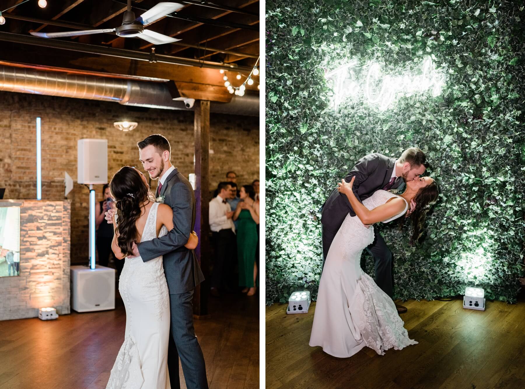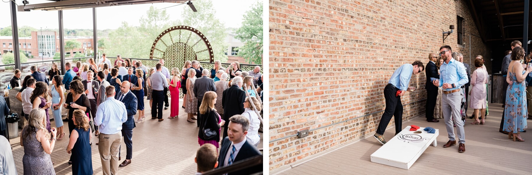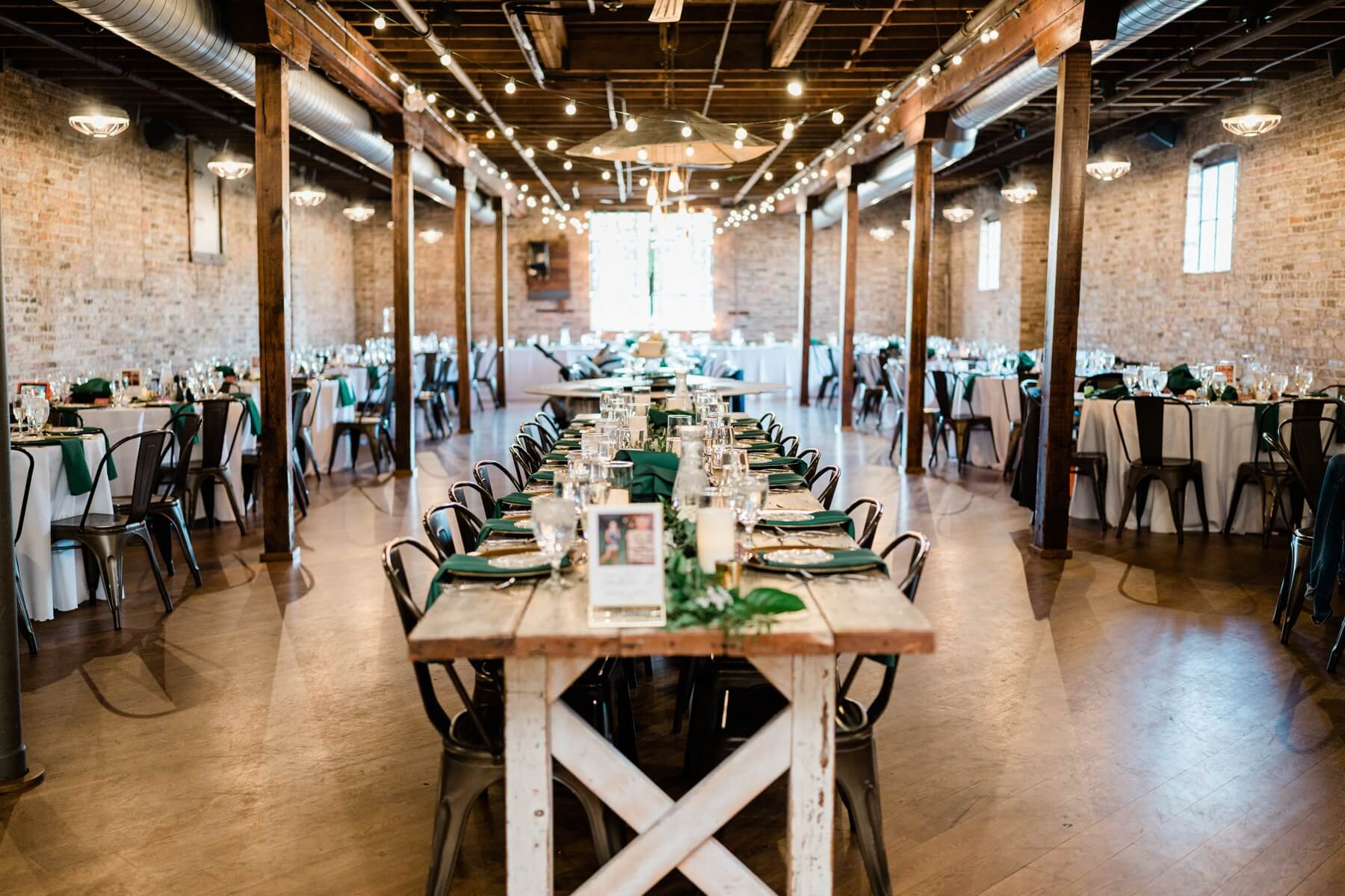 When Hannah and Brett were looking for reception venues near Chicago, they knew they wanted a venue that brought warmth and could hold up to 200 guests. Our industrial wedding venue fit their needs perfectly, so after their church reception, they headed to The Haight. The perfect weather on their special day allowed Hannah and Brett to kick off their reception with an outdoor cocktail hour, hosted on our beautiful deck. It was an opportunity for guests to soak in the surroundings and enjoy the delightful atmosphere.