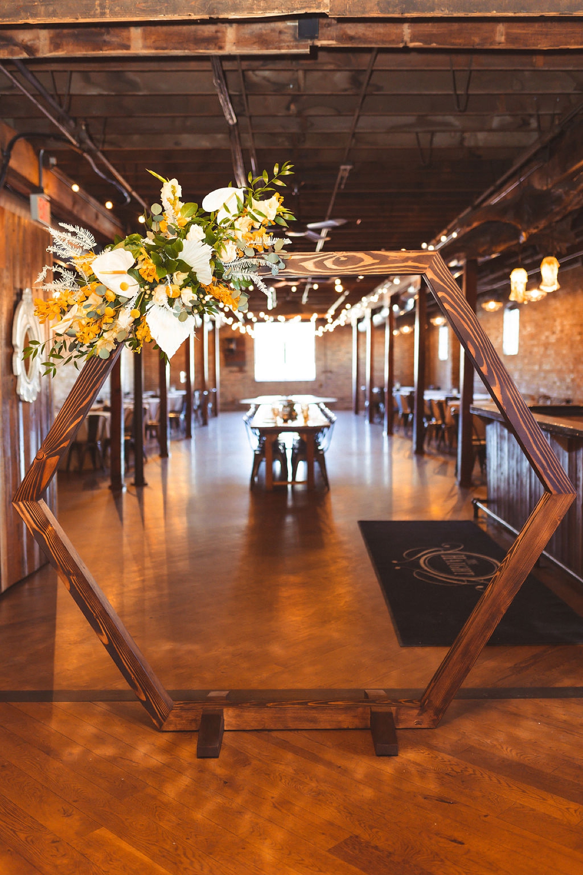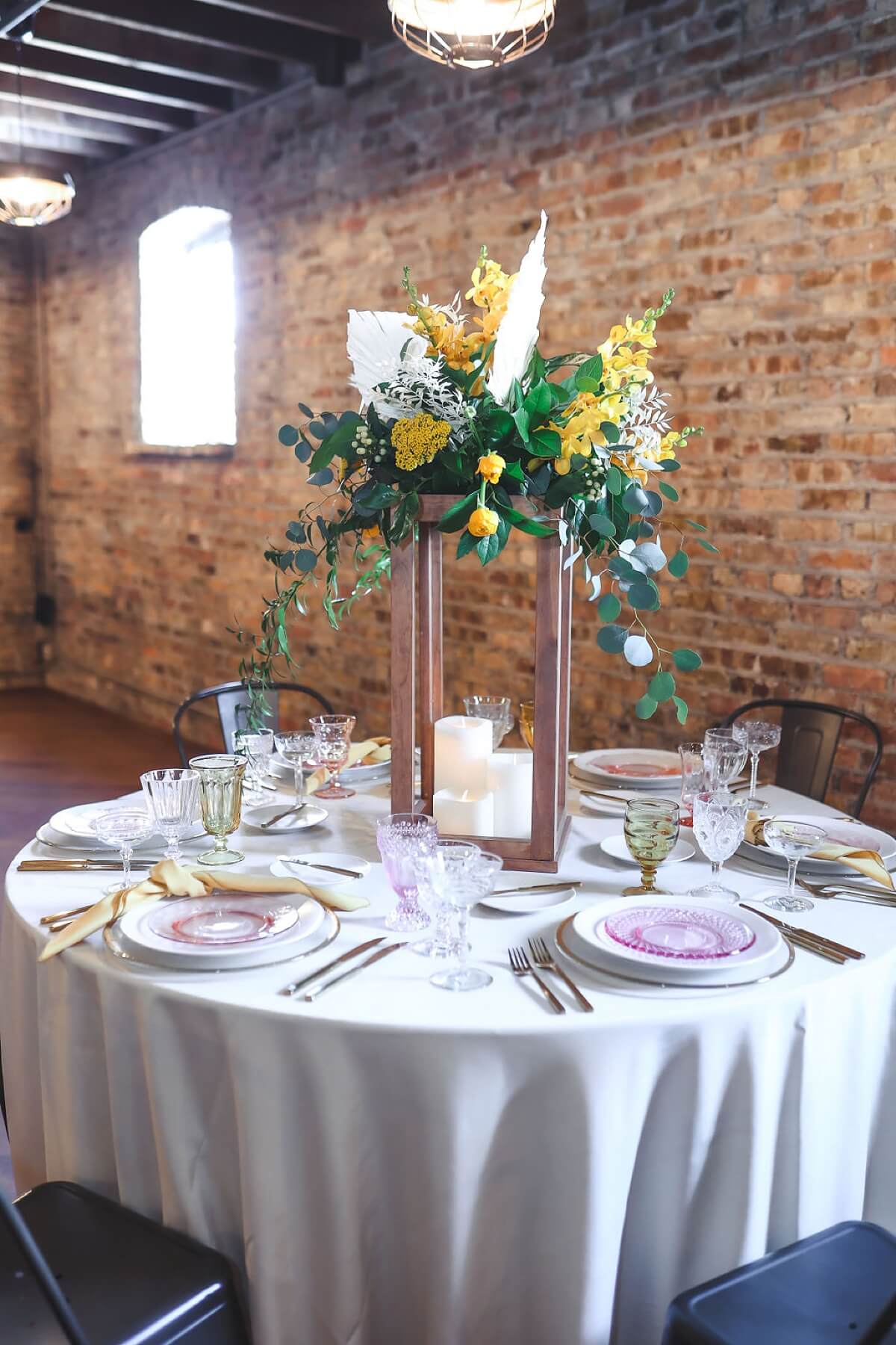 Our loft wedding venue in the Chicago area received a golden touch at a recent styled shoot we did. Inspired by Harry Styles’ song, You’re So Golden, we incorporated touches of yellow and gold throughout the space. We wanted to provide wedding inspiration for couples who are looking for a unique color palette. Since The Haight is an industrial wedding venue with a lot of exposed brick, we thought incorporating yellow, white, and green throughout the shoot would add pops of color that complimented the space perfectly.