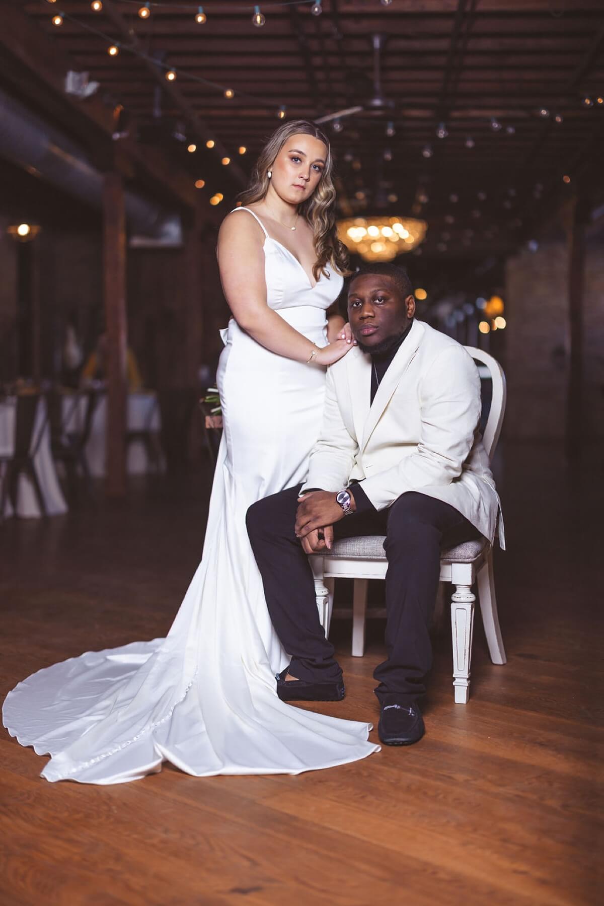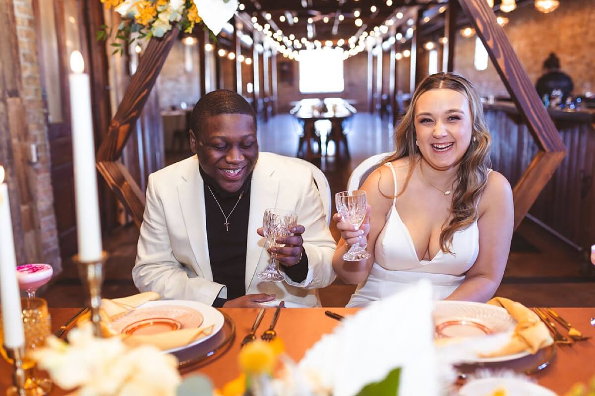 Venue & Design: The Haight | Photographer: Golden YLT Photography | 2nd Shooter & Model: Andrew Bonsu | Floral: Town & Country Gardens | Table Top Decor: Dish & Decor Vintage Rental | Linen: Windy City Linens | Cake: Sugar on Top Bakery | Beverages: The Bar | Dress: Love Theory Bridal | Hair & Makeup: One Salon & Bridal Company | Bridal Model: Madie Donner