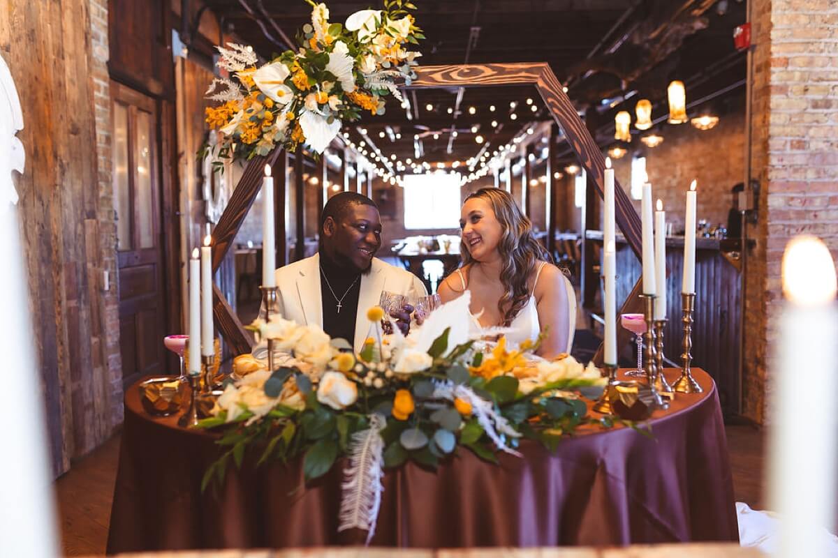 Venue & Design: The Haight | Photographer: Golden YLT Photography | 2nd Shooter & Model: Andrew Bonsu | Floral: Town & Country Gardens | Table Top Decor: Dish & Decor Vintage Rental | Linen: Windy City Linens | Cake: Sugar on Top Bakery | Beverages: The Bar | Dress: Love Theory Bridal | Hair & Makeup: One Salon & Bridal Company | Bridal Model: Madie Donner