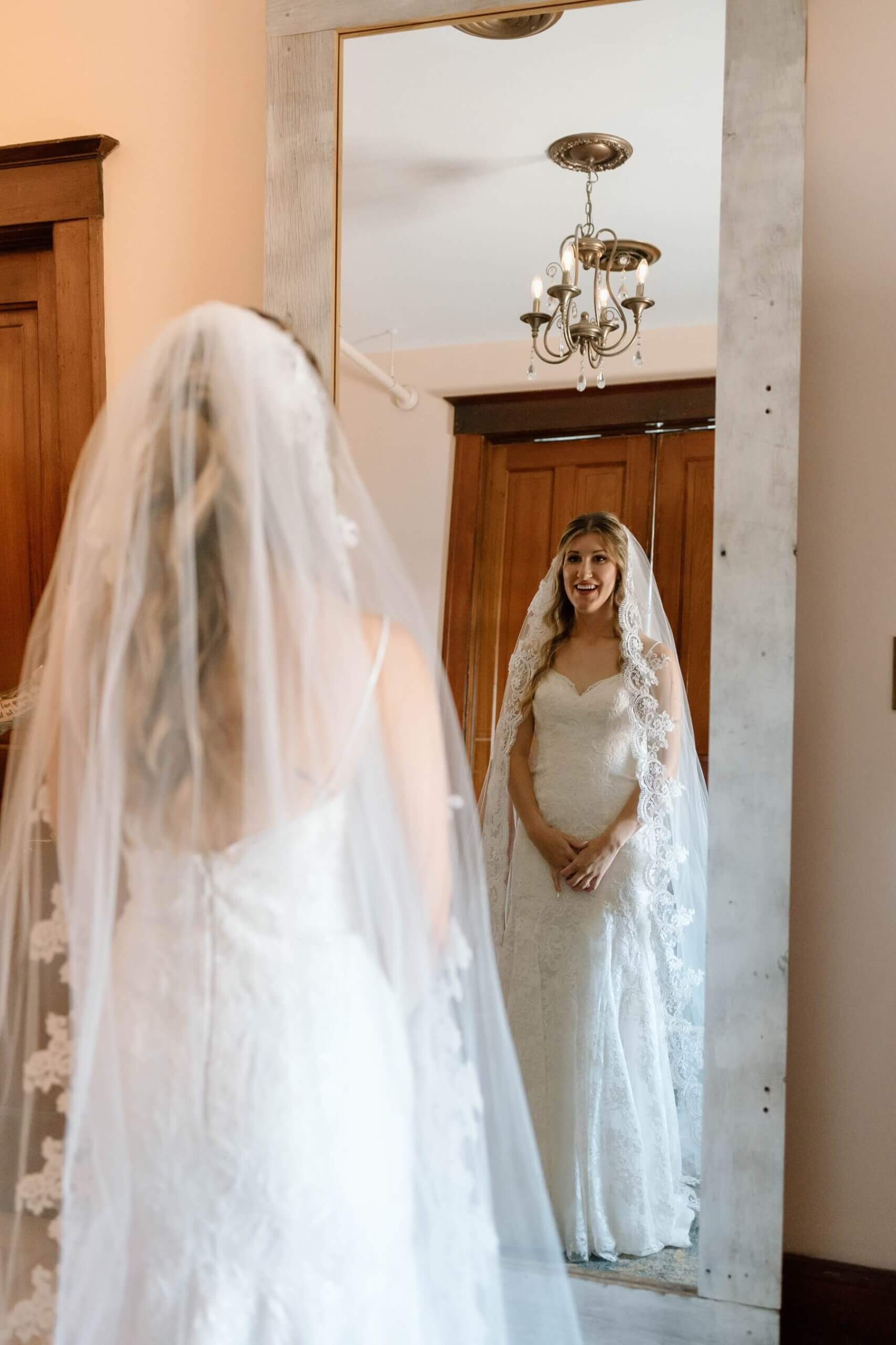 Kaitlin’s journey began in our bridal suite, surrounded by her mom and bridesmaids. She looked absolutely stunning in a form-fitting lace gown paired with a cathedral length veil, adorned with the prettiest lace trim. After she was ready, she had a sweet first look with her brother, creating a precious moment filled with love. Then Kaitlin shared a first touch with Nick so that they could talk before the ceremony without seeing each other.