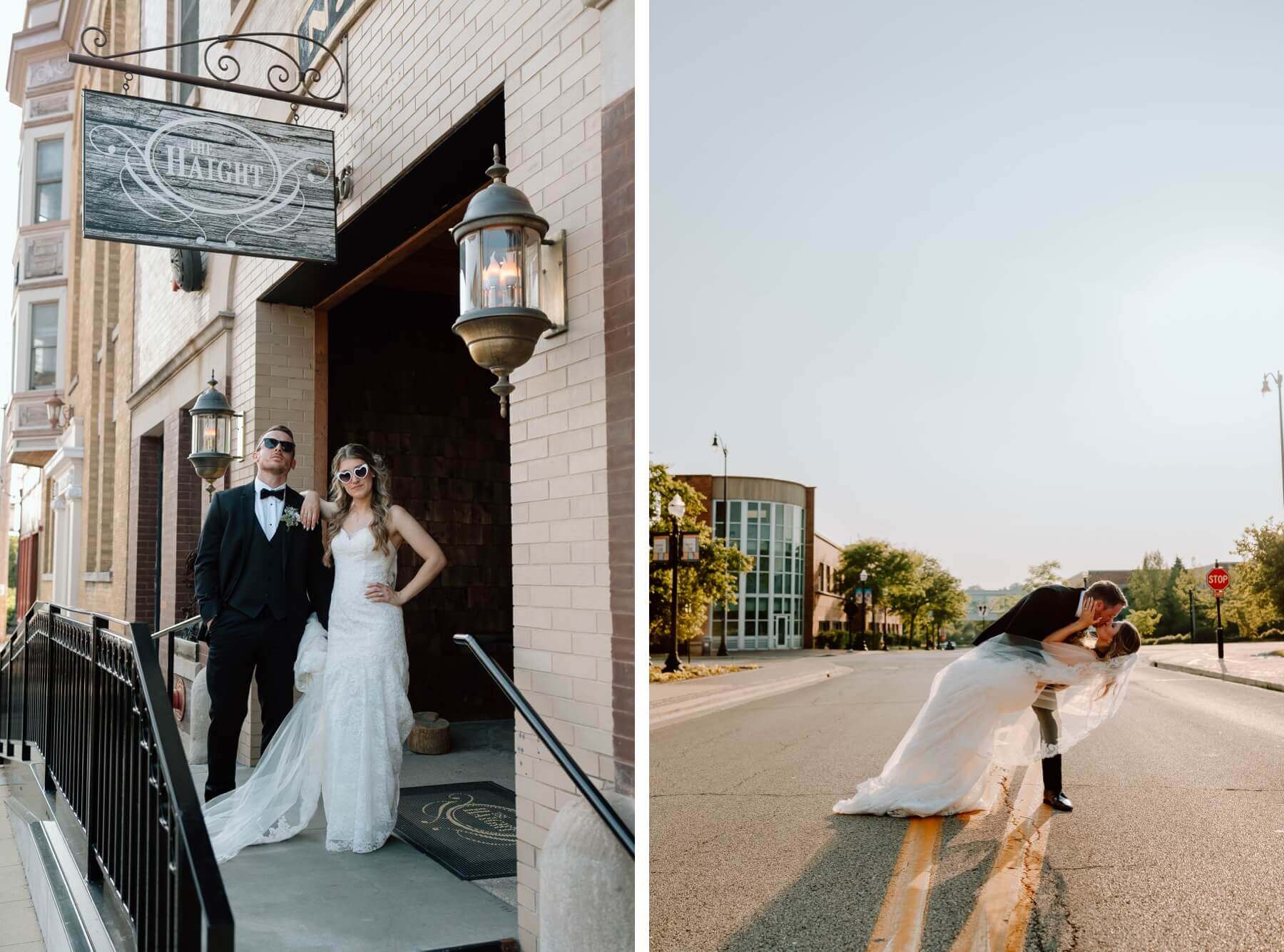 Following the ceremony, cocktail hour began while Kaitlin and Nick took photos. The couple incorporated some of our enhancements like Jenga and corn hole for their guests’ entertainment during cocktail hour. Taking advantage of the golden hour, they captured beautiful portraits on our outdoor deck and in front of The Haight, showcasing the couple’s infectious joy.