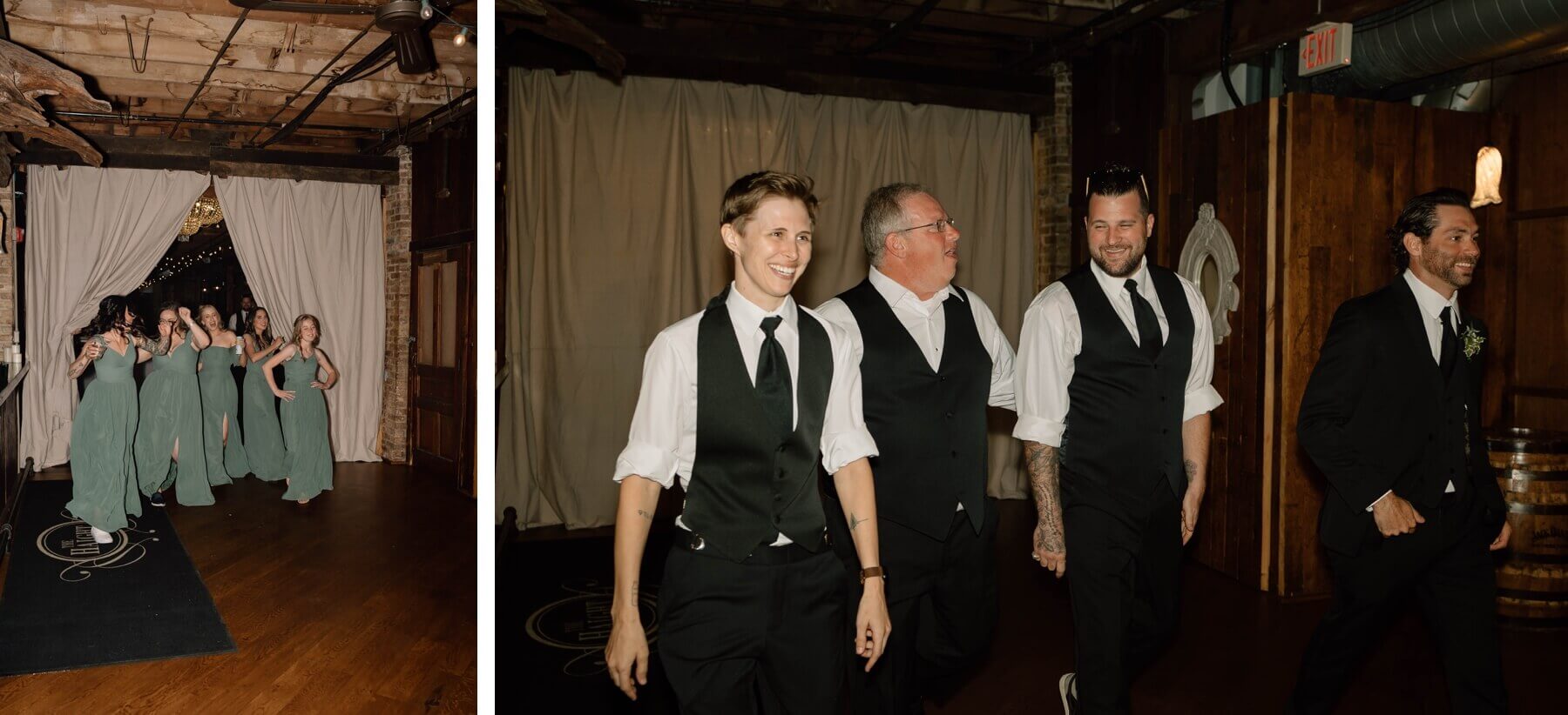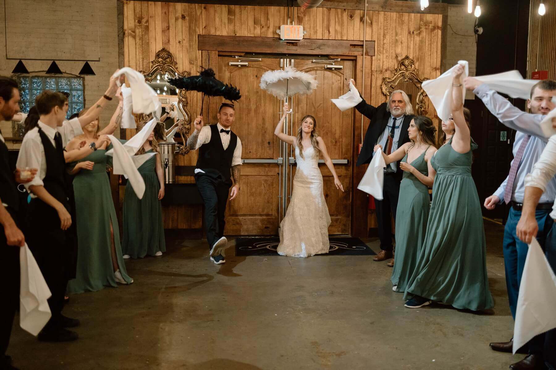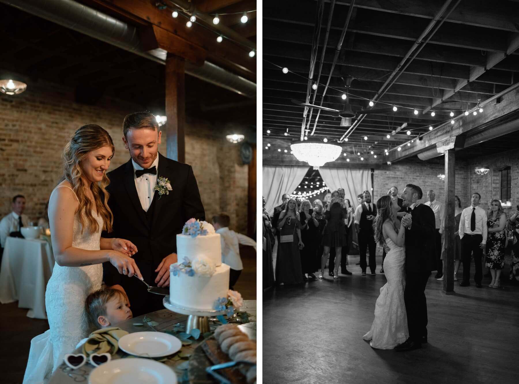 For their grand entrance, Kaitlin and Nick had the bridesmaids enter as a group and the groomsmen enter as a group. Kaitlin and Nick’s entrance, accompanied by Kaitlin’s little brothers, set the stage for a night filled with love and laughter. The couple cut their two-tier cake adorned with beautiful flowers, enjoyed dinner during heartfelt toasts, and shared a magical first dance.