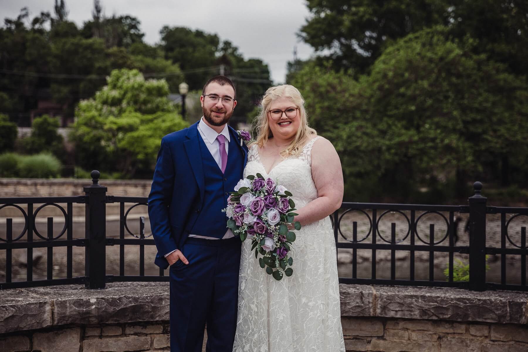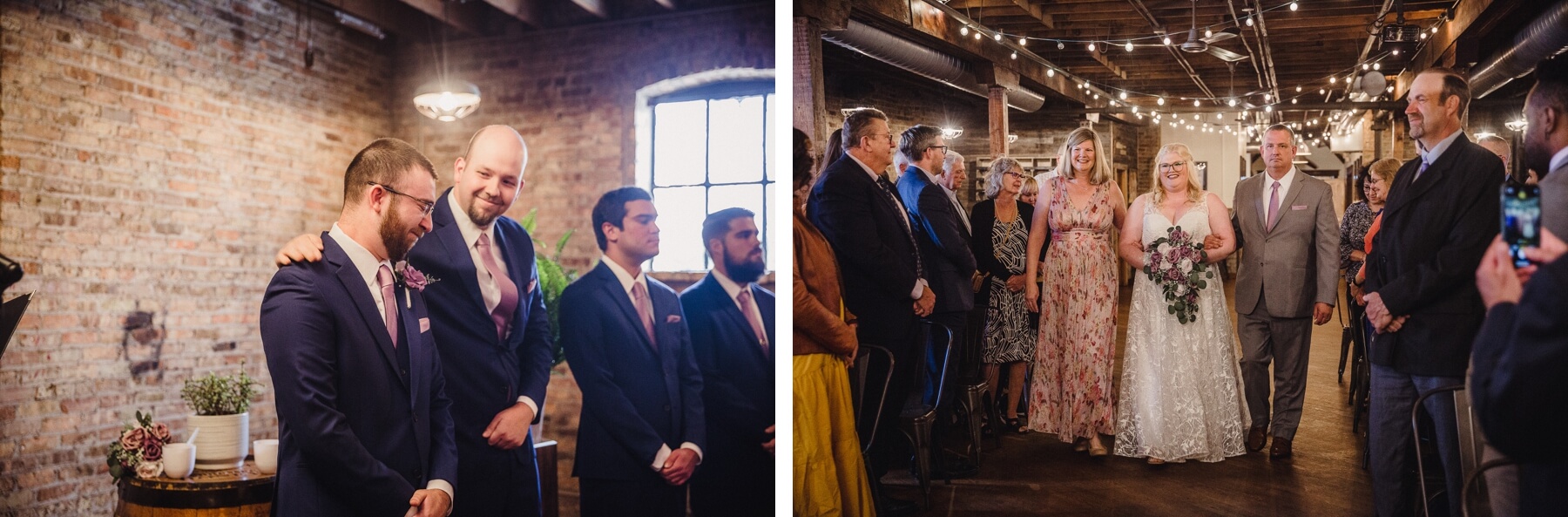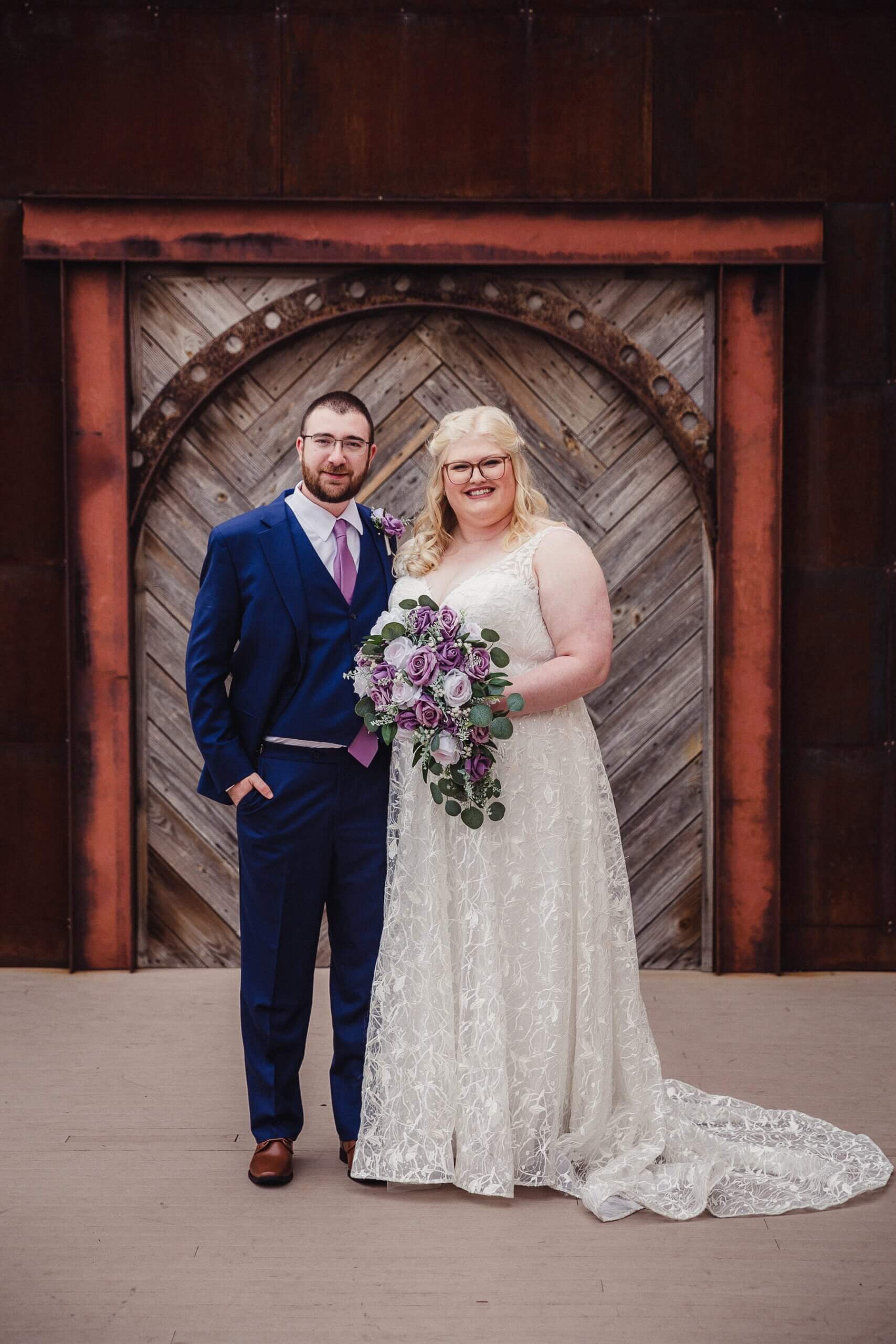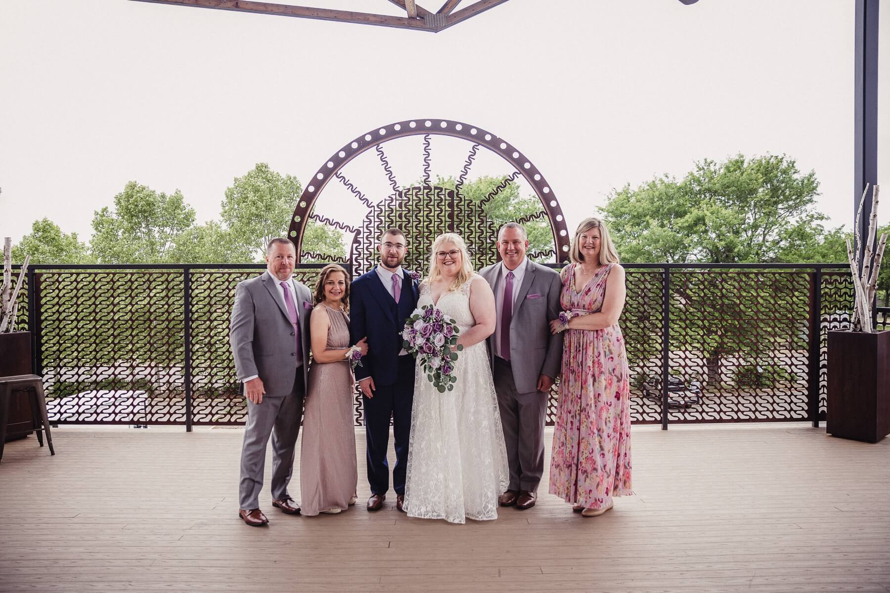 Before joining the ceremony, Elyssa and Bryan explored the venue with their wedding party, capturing timeless moments against the backdrop of our historic space. The bridesmaids, elegantly dressed in varying styles of purple dresses, and the groomsmen, sporting coordinating blue suits, added a delightful pop of color to the surroundings. After more photos around Elgin, the couple gathered their families for heartwarming family portraits, building anticipation for the upcoming ceremony.