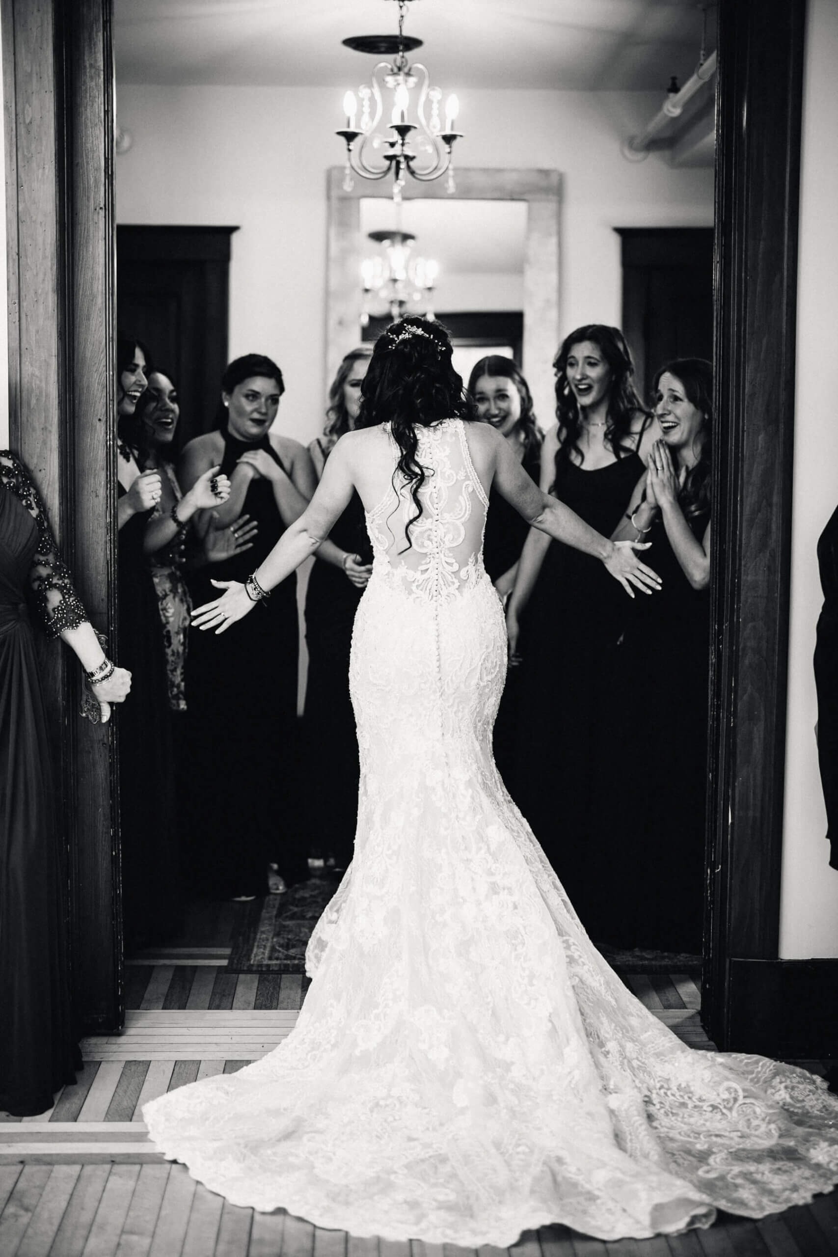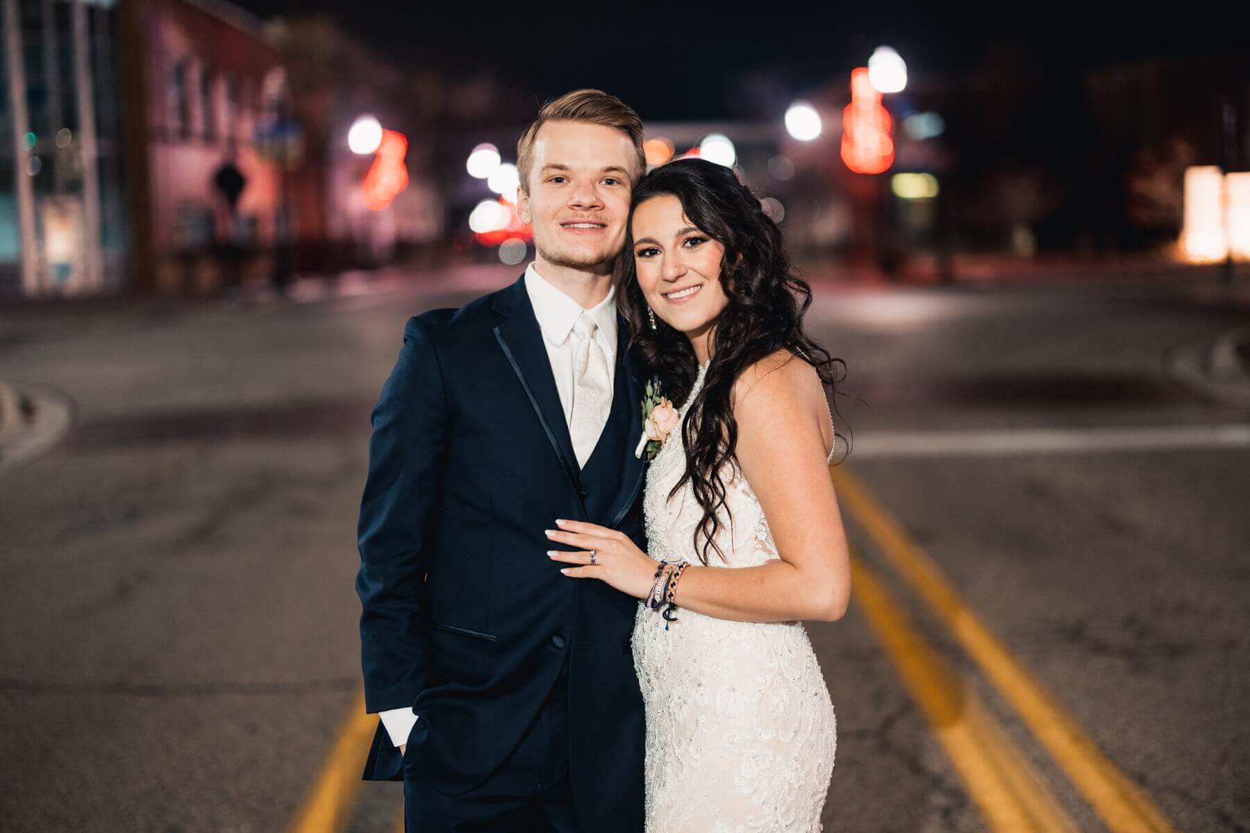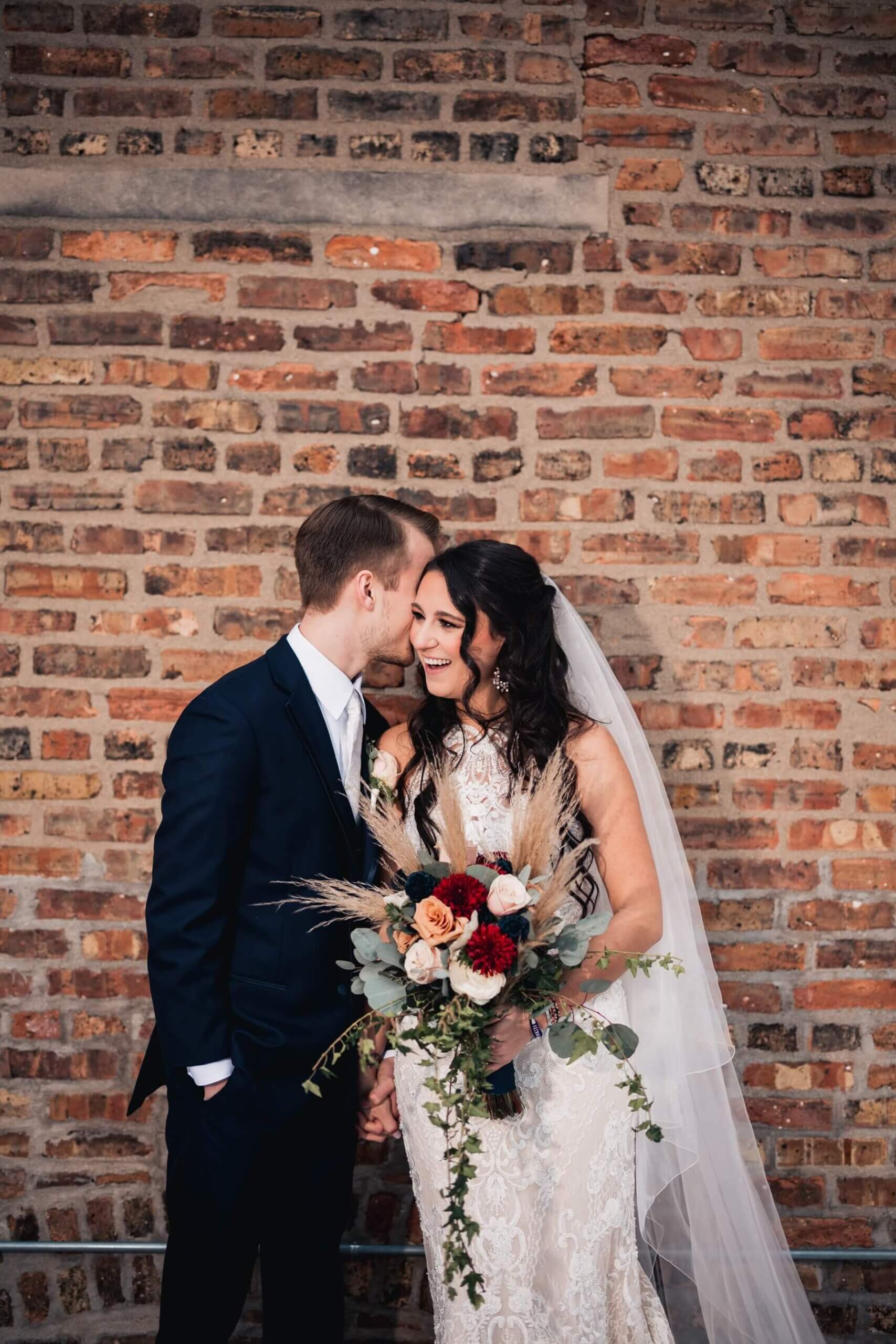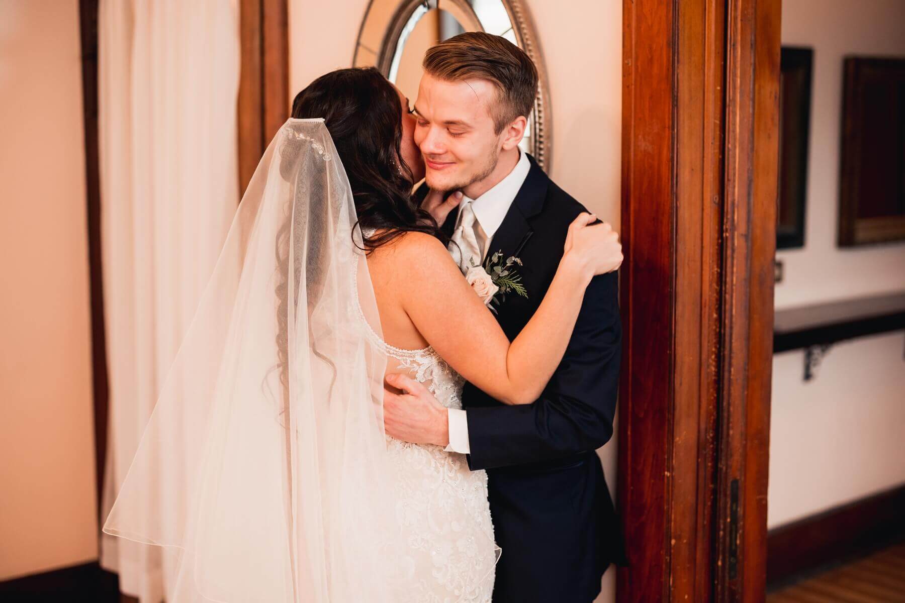 Olivia and Colin both got ready in our bridal suites. Olivia wore a form fitting lace dress with a high neckline and see through back. We loved seeing how she used the suite for her bridal portraits. They turned out so romantic and gorgeous! Colin and Olivia did their first look upstairs then did their couple’s portraits around the venue. As a wedding venue in Illinois, we know how unpredictable the weather can be so we have plenty of indoor and outdoor spaces for photos which the couple took advantage of.