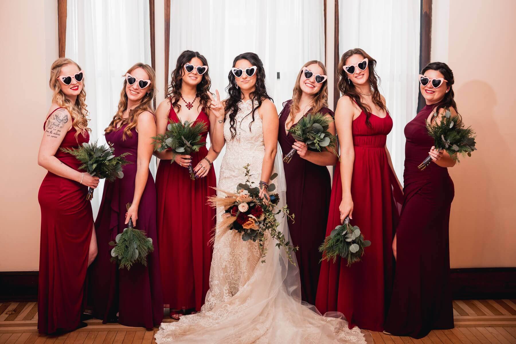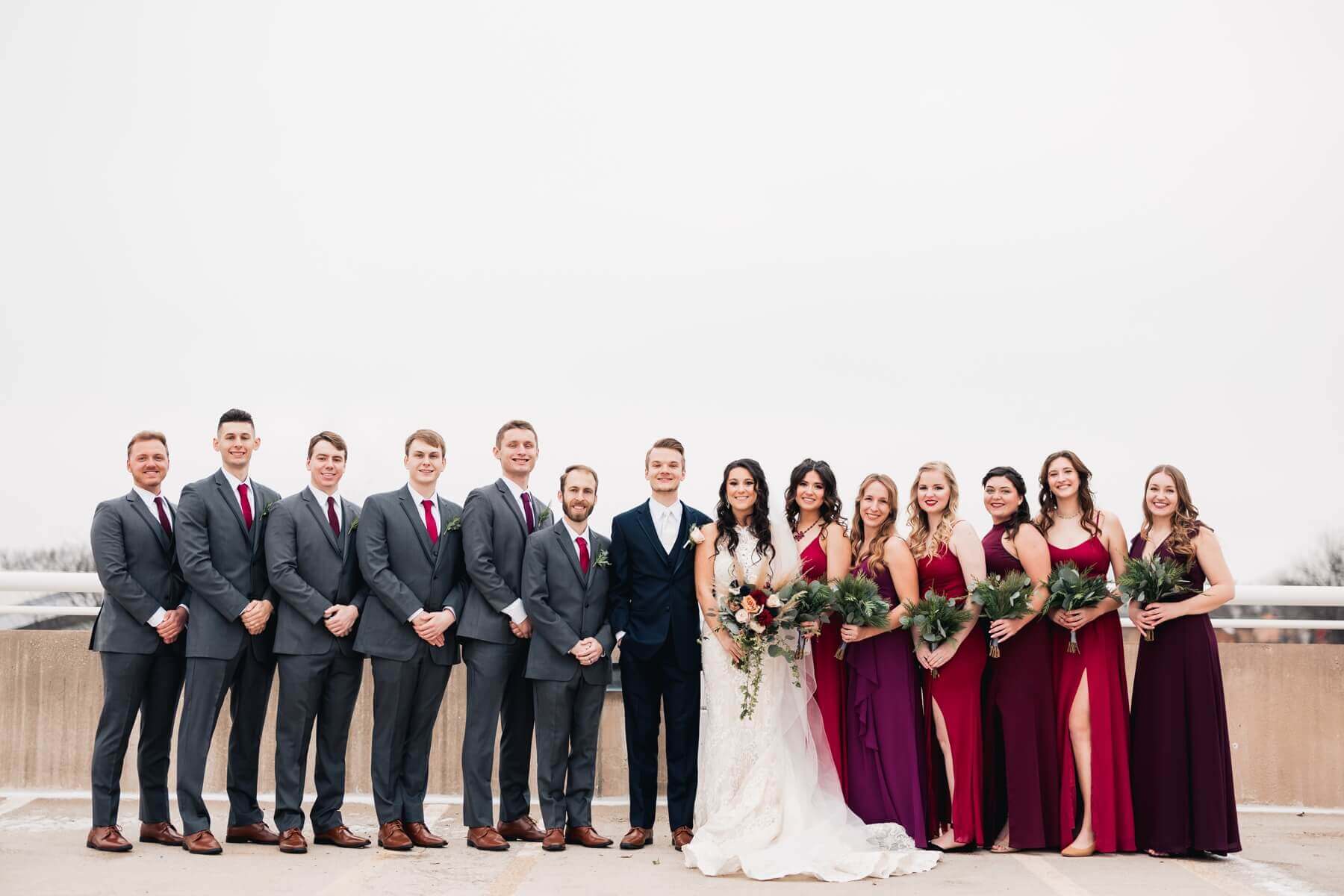 Crimson and Gray Bridal Party Details