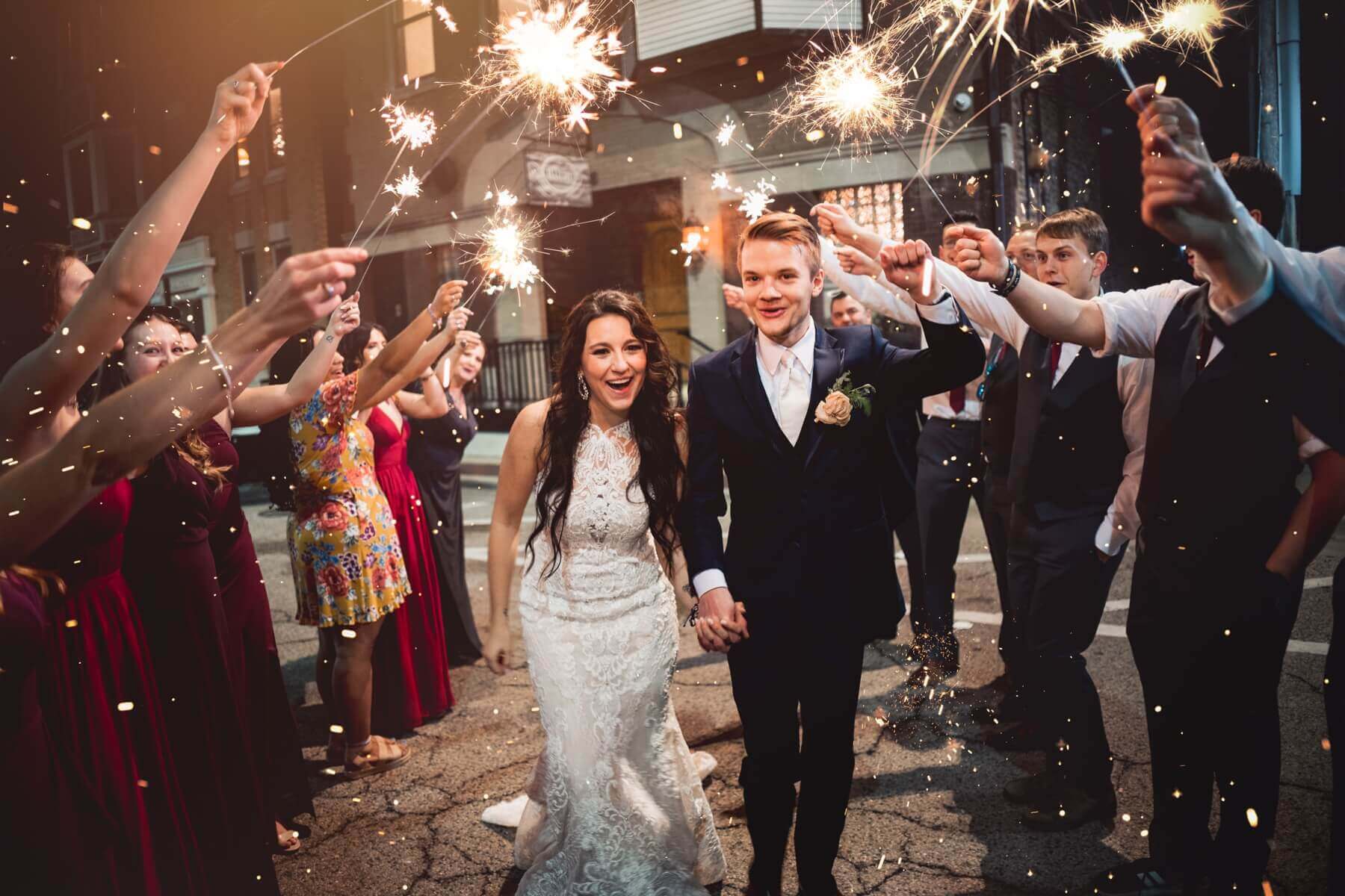 The couple did their big entrance where Olivia wore the cutest white heart sunglasses. For their cake cutting, they chose tiramisu since that’s one of their favorite desserts. After that, the toasts were given and dinner was enjoyed. Then it was time to dance! Olivia and Colin had such a fun first dance then danced with dad and mom respectively. Once the dances were done, they snuck away for a sparkler exit. After that, they came back and enjoyed tearing up the dance floor with their guests.